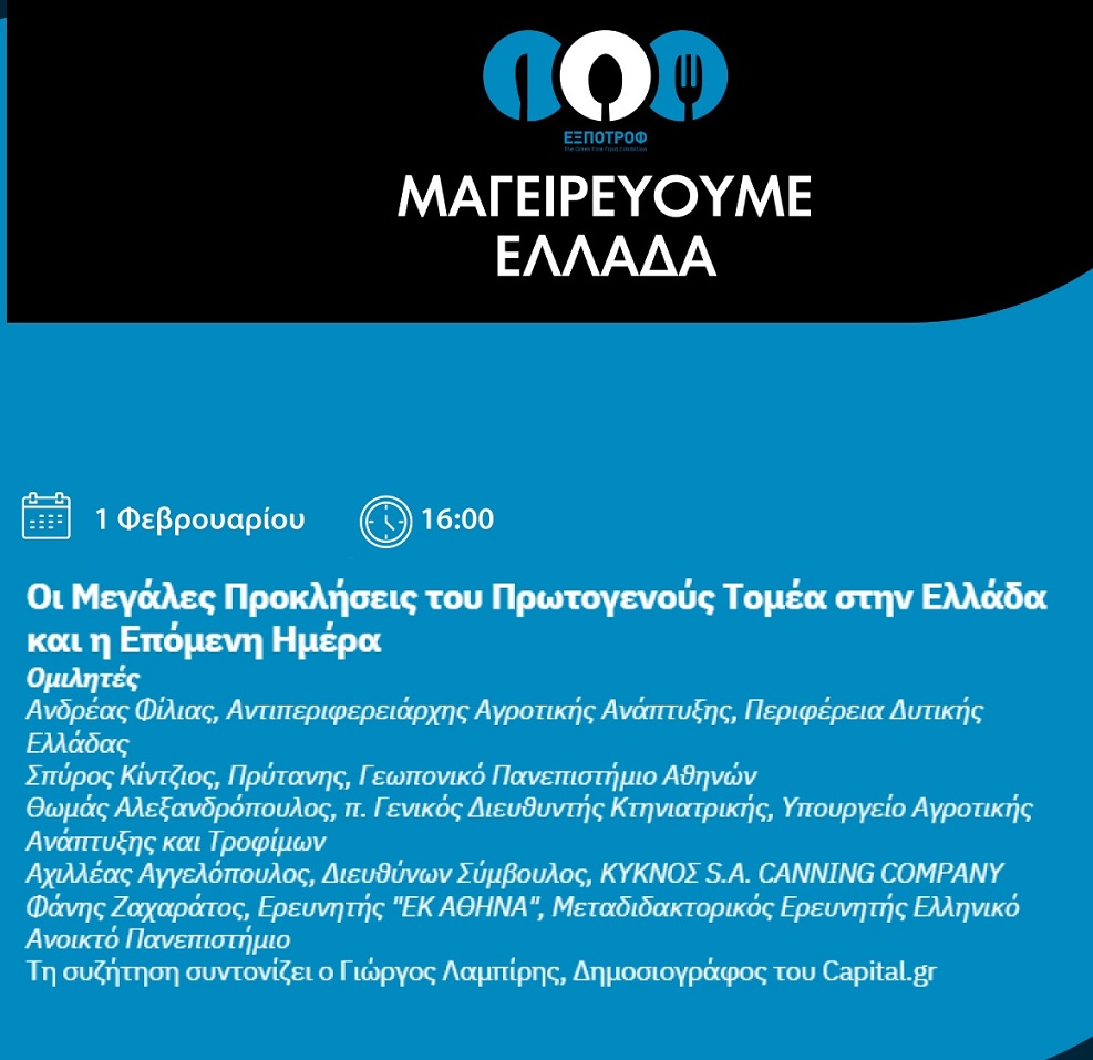 Παράλληλα, στο πλαίσιο της Έκθεσης η ΠΔΕ ως Τιμώμενη Περιφέρεια διοργανώνει ενότητα συζήτησης με τίτλο «Οι Μεγάλες Προκλήσεις του Πρωτογενούς Τομέα στην Ελλάδα και η Επόμενη Ημέρα» με τη συμμετοχή σημαντικών ομιλητών ενώ στην ενότητα «Μαγειρεύουμε Ελλάδα», θα παρουσιαστούν συνταγές υψηλής γαστρονομίας, αναδεικνύοντας τα τοπικά προϊόντα της Δυτικής Ελλάδας και προβάλλοντας τη γαστρονομική παράδοση της περιοχής.