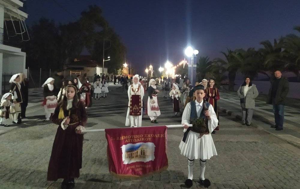Ο Καλυβιώτικος σύλλογος, με την Πρόεδρο Μαίρη Ζαπαντιώτη – Στρατοπούλου και κυρίες που κρατούσαν το λάβαρο, για μια ακόμη χρονιά παρευρέθηκαν στις εκδηλώσεις που γίνονται με λαμπρότητα στην ιστορική κωμόπολη του Αιτωλικού.