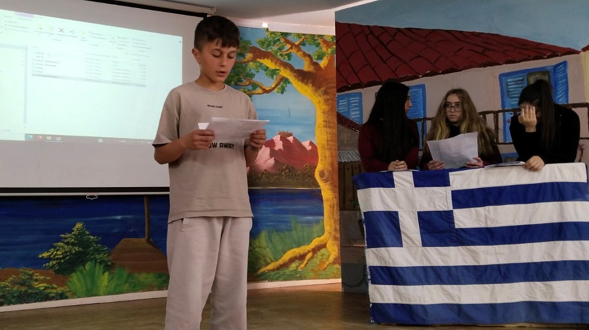Στο τέλος της εκδήλωσης εκπαιδευτικοί και μαθητές τραγούδησαν τον Ελληνικό Εθνικό Ύμνο!