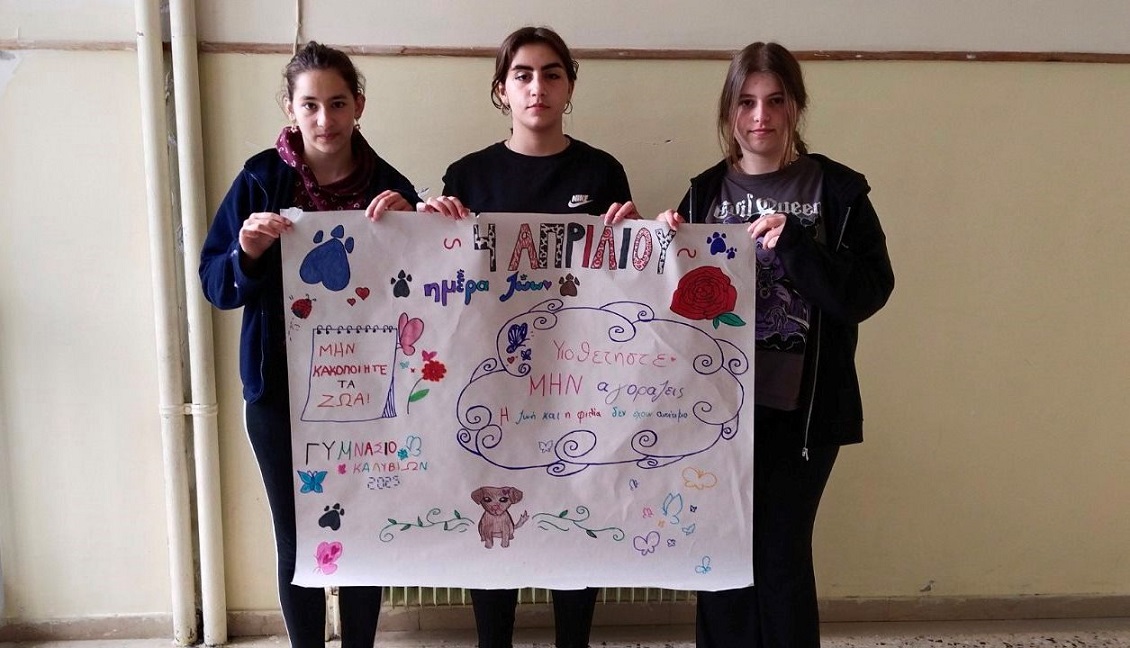 Οι μαθητές και οι μαθήτριες του Γυμνασίου αφού επεξεργάστηκαν το ανάλογο υλικό που αναρτήθηκε στο Ινστιτούτο Εκπαιδευτικής Πολιτικής (Ι.Ε.Π.) το παρουσίασαν στην αίθουσα εκδηλώσεων. Επίσης δημιούργησαν ένα πανό με συνθήματα κατά της κακοποίησης ζώων.