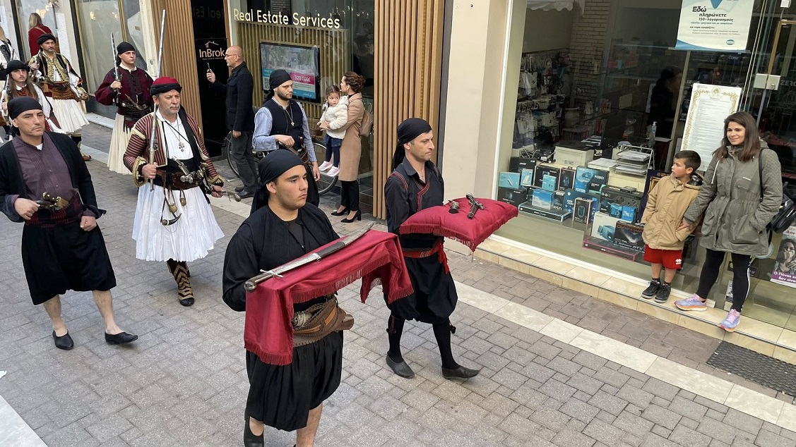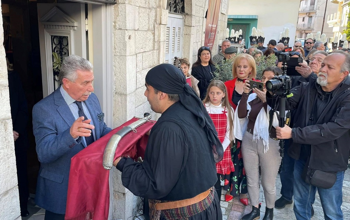 Η εκδήλωση πραγματοποιήθηκε στα πλαίσια των Εορτών Εξόδου, σήμερα Τετάρτη 9 Απριλίου και ξεκίνησε από την "Διέξοδο" με τον ιδρυτή του Ιστορικού Μουσείου, Νίκο Κορδόση να παραδίδει των κειμήλια του Αρχηγού σε νέους του Ομίλου Φίλων Ιστορικής Φορεσιάς και Οπλισμού «Ο Λιάρος».