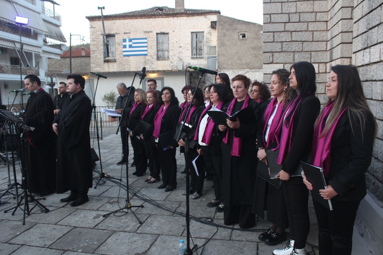 Μια ξεχωριστή εκδήλωση υπό τον τίτλο «Οδεύοντας προς το θείον Πάθος» με ύμνους της μεγάλης Εβδομάδας, πραγματοποιήθηκε χθες Παρασκευή 11 Απριλίου, στην Αμφιλοχία, στον αύλειο χώρο του ιερού Ναού της Αγίας Παρασκευής με την χορωδία"Μαιστράλι" της Αμφιλοχίας Δίοδος και συνοδεία παραδοσιακών οργάνων.