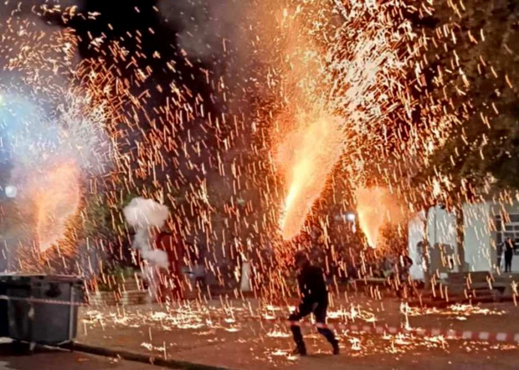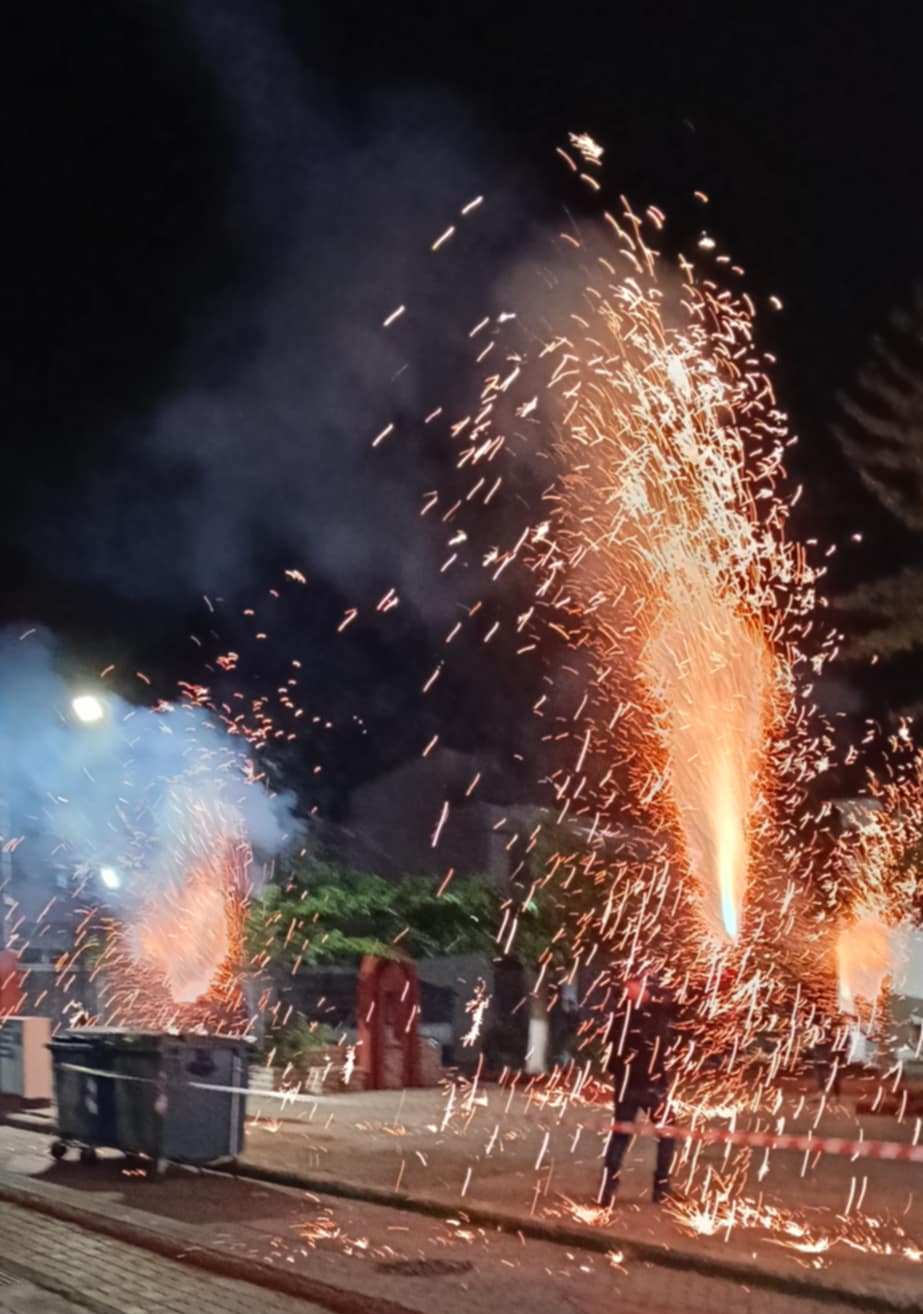 Επίδειξη Χαλκουνιών από χαλκουνάδες πραγματοποιήθηκε απόψε Μεγάλη Τετάρτη, στην πλατεία Καλυβίων, μετά το πέρας της Ακολουθίας του Νιπτήρος στον Ι.Ν. Αγίου Νικολάου, με πολλούς κατοίκους να παρακολουθούν το εντυπωσιακό θέαμα των πυροτεχνημάτων.