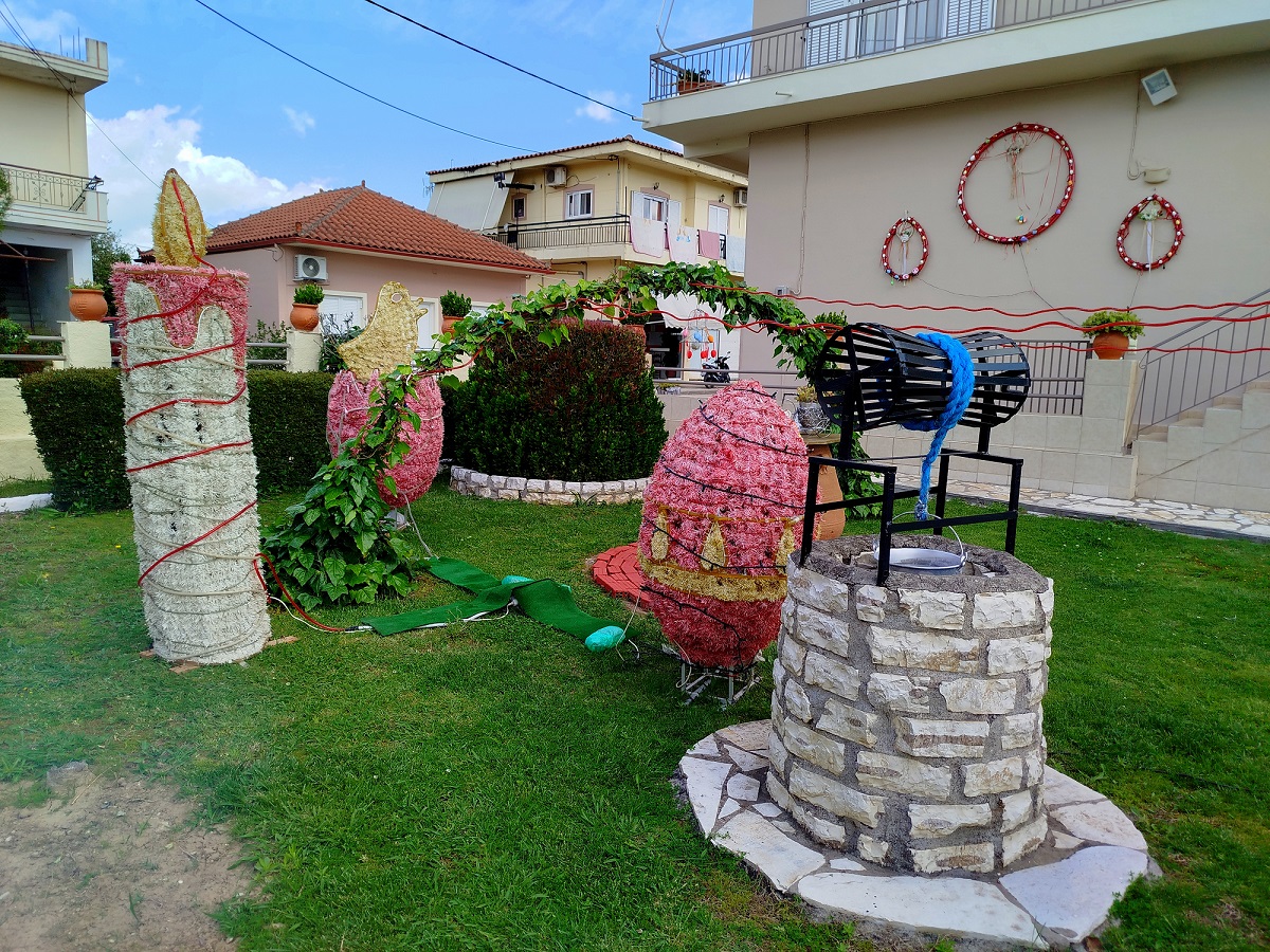 Ένα μικρό θεματικό πάρκο, με μεγάλα διακοσμητικά αυγά, με συνθέσεις λουλουδιών και πολύχρωμων βαμμένων αυγών κρεμασμένα στο κιόσκι ή στο φράκτη, τοποθετημένα δίπλα στα παλιά αντικείμενα που έχει συγκεντρώσει με προσωπικό κόπο, η κυρία Νίκα, ενώ ένα παλιό ποδήλατο και μια βρύση (τρόμπα) ξεχωρίζουν ανάμεσα στα άλλα κομμάτια της συλλογής της…
