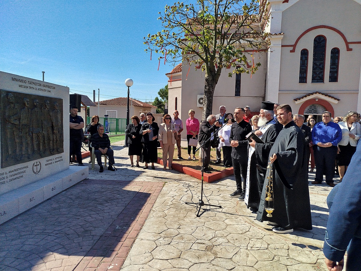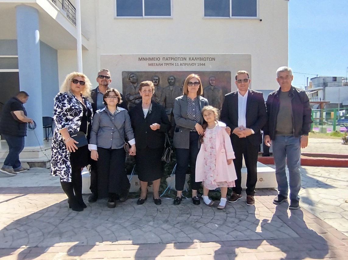 Τελέσθηκε σήμερα Κυριακή 4 Μαΐου στο Μνημείο που έχει στηθεί στην πλατεία Καλυβίων, το Επίσημο Μνημόσυνο εις μνήμην των 12 θυμάτων της Γερμανικής Κατοχής, μεταξύ αυτών και 5 Καλυβιωτών, που εκτελέσθηκαν την Μεγάλη Τρίτη 11 Απριλίου 1944 στην Μεγάλη Χώρα (Ζαπάντι).