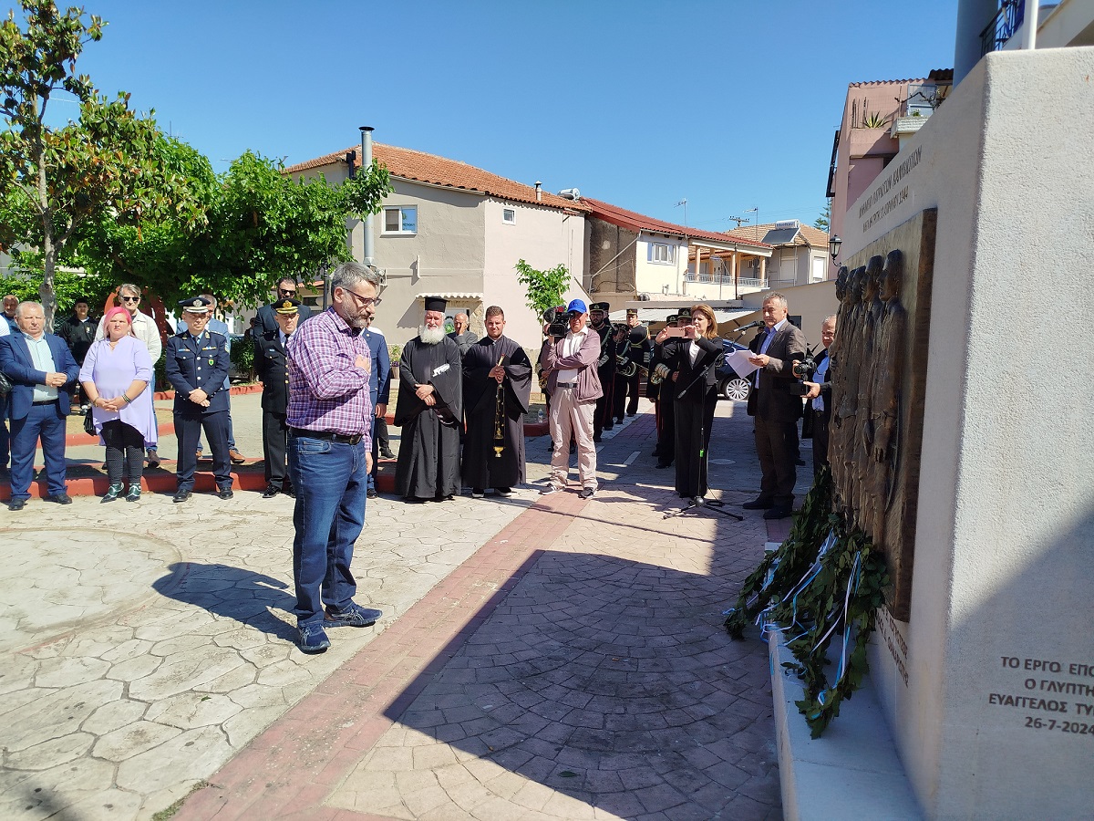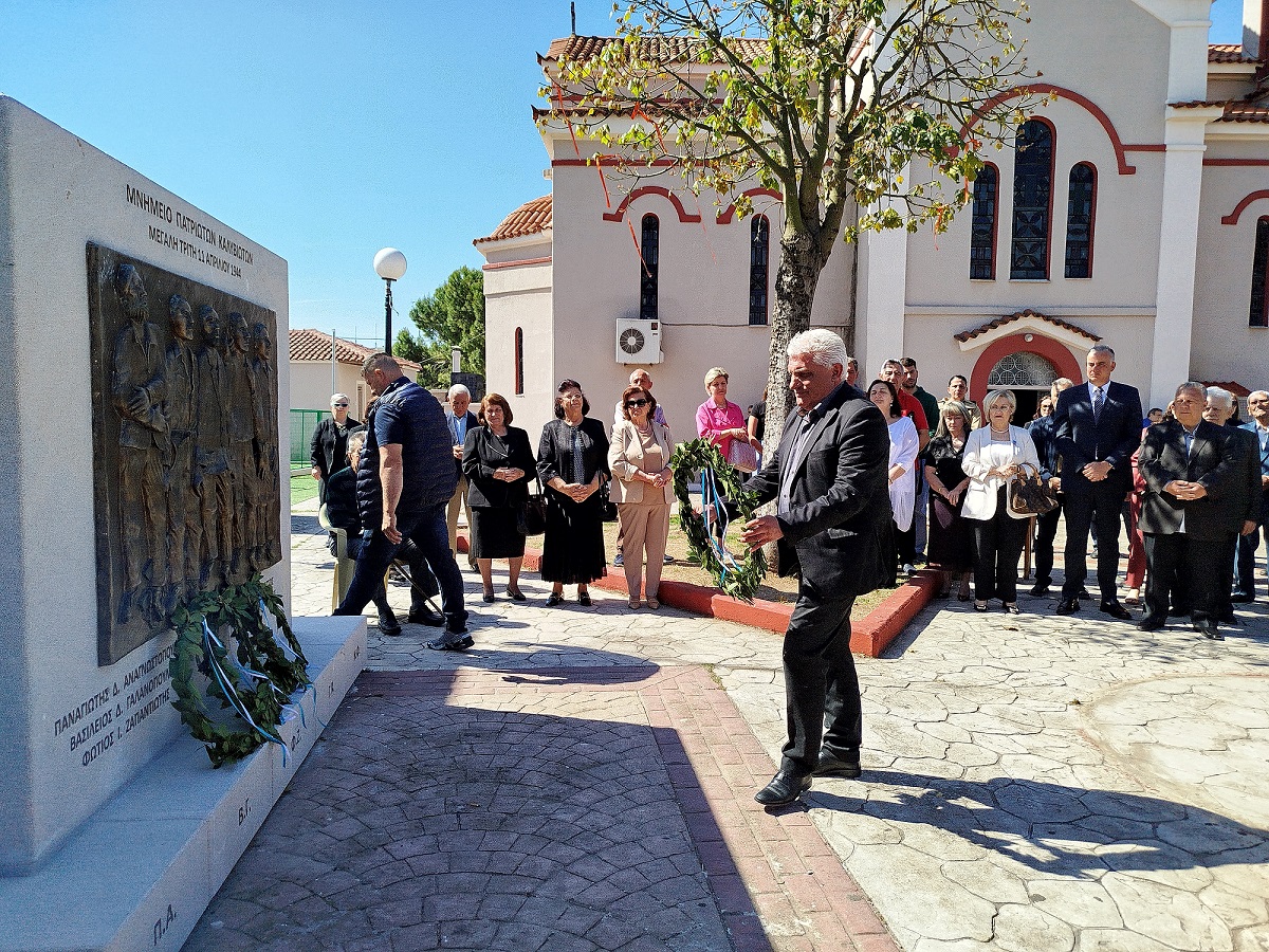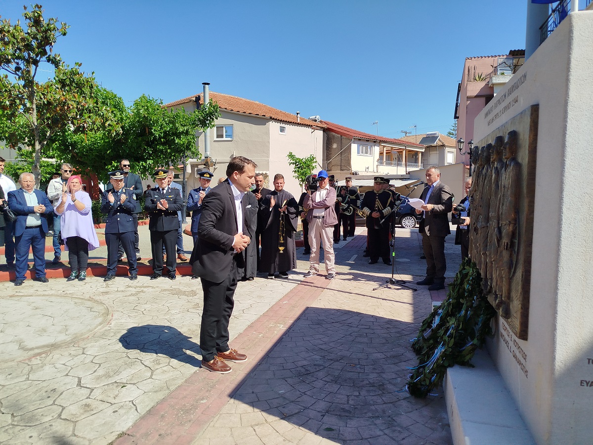 Παρέστησαν και κατέθεσαν στεφάνια, ο Δήμαρχος Αγρινίου, Γιώργος Παπαναστασίου, ο Πρόεδρος του Δημοτικού Συμβουλίου, Κωνσταντίνος Ζώης, εκ μέρους της Περιφέρειας Δυτ. Ελλάδος, ο Εντεταλμένος Σύμβουλος, Γιώργος Κοντογιάννης, ο Βοηθός Αστυνομικού Διευθυντή Ακαρνανίας Θ. Νταλαπέρας, ο εκπρόσωπος του αποσπάσματος Αγρινίου της Ελληνικής Πολεμικής Αεροπορίας, ο Υποδιοικητής της Πυροσβεστικής Υπηρεσίας Αγρινίου, Αντιπύραρχος Βασ. Μαδιάς, ο Πρόεδρος της Κοινότητας Αγρινίου, Κώστας Μποκώρος, ο εκπρόσωπος της μείζονος αντιπολίτευσης Δημήτρης Τριανταφυλλάκης, ο εκπρόσωπος του κόμματος "ΝΙΚΗ" Βασίλης Μαλεσιάδας, ο Πρόεδρος της Κοινότητας Αγίου Κωνσταντίνου Αγρινίου, Γιώργος Σταύρου, η Πρόεδρος του Συλλόγου Γυναικών Καλυβίων, Μαίρη Ζαπαντιώτη, η εκρπόσωπος της Χορωδίας Καλυβίων, Ιφιγένεια Χρυσικού και συγγενείς των οικογενειών.