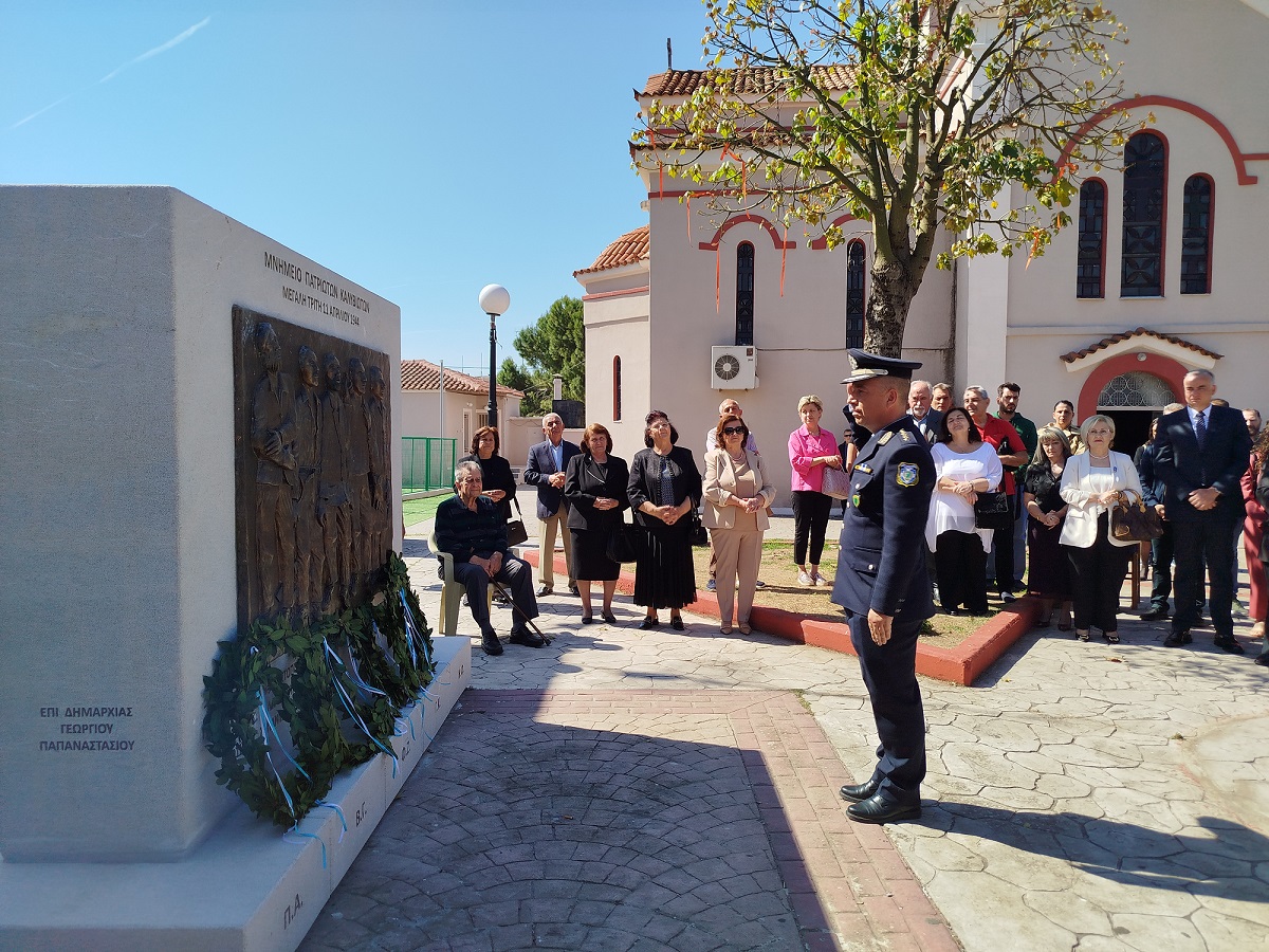 Την κεντρική ομιλία έκανε ο Πρόεδρος της Κοινότητας Καλυβίων, Δημήτρης Αναστασίου, ο οποίος αναφέρθηκε στο ιστορικό της ημέρας αναφέροντας ότι: «Είμαστε όλοι σήμερα εδώ για να τιμήσουμε τους ανθρώπους που έδωσαν τη ζωή τους για την ελευθερία της πατρίδας και εκτελέστηκαν από τα γερμανικά στρατεύματα κατοχής. Εκδηλώσεις σαν τη σημερινή είναι γέφυρες που ενώνουν το σήμερα με το χθες, το σήμερα με το παρελθόν, με την ιστορία».