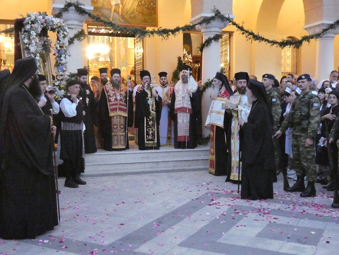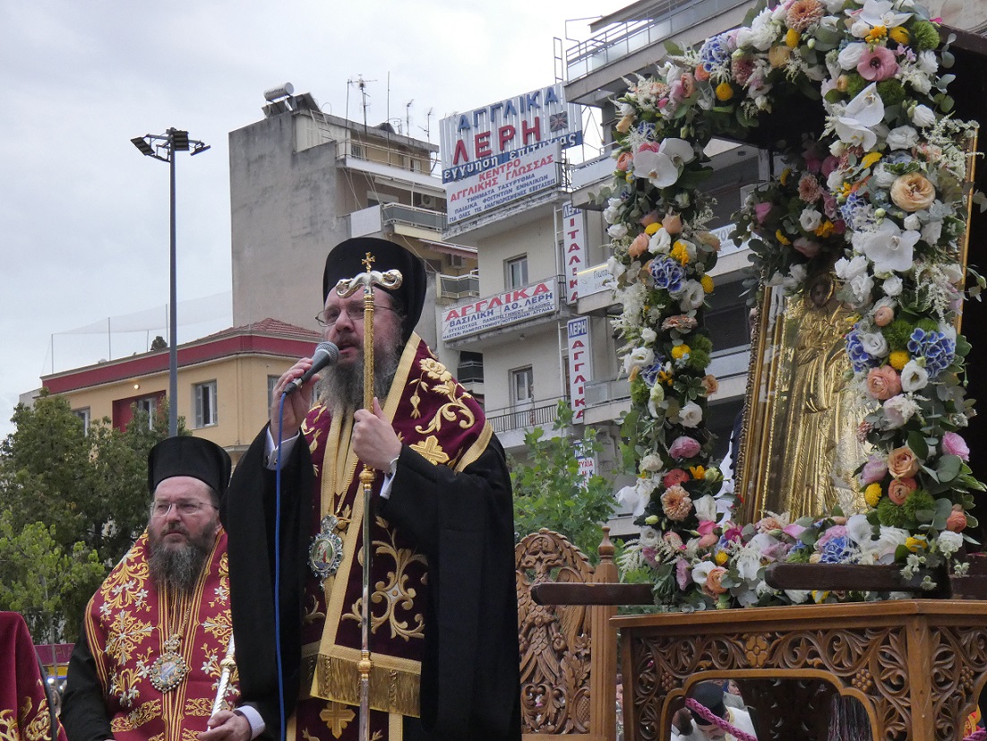 Εσύ, λοιπόν, Άγιε Χριστοφόρε κρατάς στα χέρια σου τις τύχες αυτής της πόλης. Είμαστε βέβαιοι, έχουμε ακλόνητη την ελπίδα, ότι σε κάθε πρόβλημά μας θα σπεύσεις για να μας προσφέρεις την λύση. Σε κάθε θλίψη θα έρθεις για να σκουπίσεις τα δάκρυα που ρέουν από τα μάτια μας. Θα ακουμπήσουμε πάνω σου και θα αισθανθούμε τη δύναμη της αγάπης σου. Και εμείς, όλα τα πνευματικά σου παιδιά, από τον Επίσκοπο και τον Ιερό Κλήρο, τους Ιεροψάλτες και τους Άρχοντες και τον πιστό Λαό αυτής της εκκλησιαστικής επαρχίας, που σήμερα σου προσφέραμε τα ρόδα της αγάπης και της καρδιάς μας, πάντοτε θα σε επικαλούμεθα στις προσευχές μας. Πάντοτε θα προστρέχουμε προσευχητικά σε εσένα. Θα εκζητούμε τη μεσιτεία σου. Θα επιθυμούμε την πρεσβεία σου και θα σε επικαλούμαστε ως τον μόνο προστάτη και έφορο της ζωής μας».