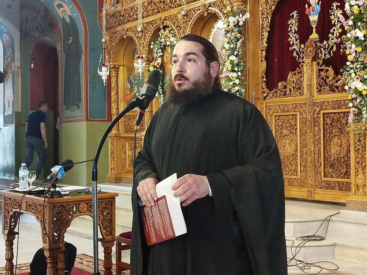 Ο ομιλητής αφιέρωσε μέρος της εισήγησής του και στην βλασφημία, ένα μέγιστο αμάρτημα όπως τόνισε και παρότρυνε τους πιστούς να ικετεύουμε και να ζητούμε την βοήθειά της Παναγίας μας: «Κυρία Θεοτόκε,Παρηγορήτρια Μάνα μας, μεσίτευσε στον Υιό Σου και Θεό μας, να μην μας παραδειγματίσει που βλασφημούμε λόγω και έργω συνεχώς και...υπερηφάνως το πανάχραντο Πρόσωπό Σου...Συνέχισε να Τον παρακαλείς να αλλάζει συνεχώς την απόφασή Του, για τον απειθούντα και αντιλέγοντα νέο...αλλόκοτο Ισραήλ...».