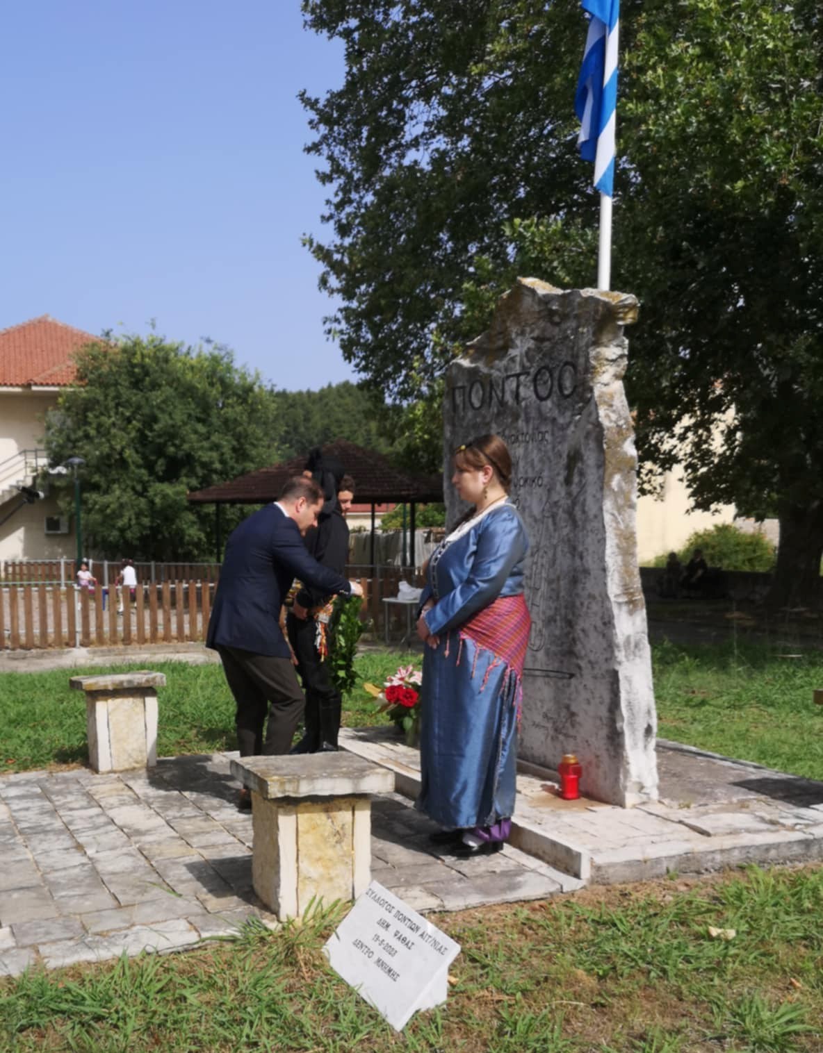 Στη συνέχεια στο χώρο του Ποντιακού Μνημείου, στην πλατεία του χωριού, τελέστηκε επιμνημόσυνη δέηση κι έγινε κατάθεση στεφάνων.