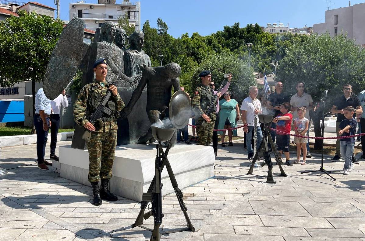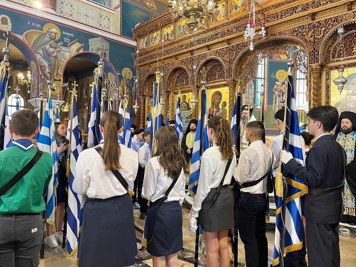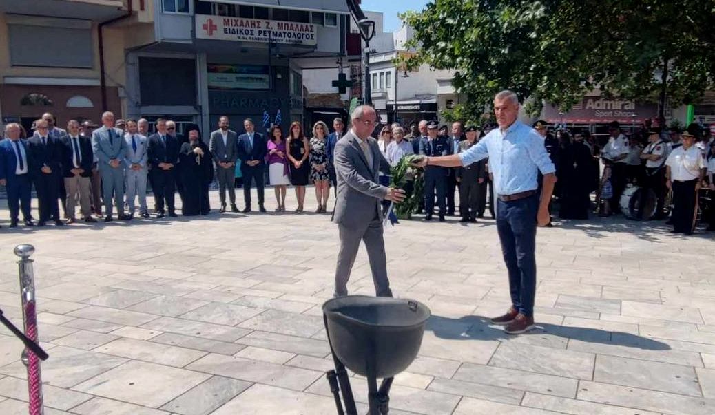 Ακολούθησε η Επιμνημόσυνη δέηση και η κατάθεση στεφάνων στο Μνημείο των Πεσόντων, στην Πλατεία Μαρίας Δημάδη από τις επίσημες αρχές, μαθητές των Σχολείων Α/θμιας και Β/θμιας Εκπαίδευσης κλπ.