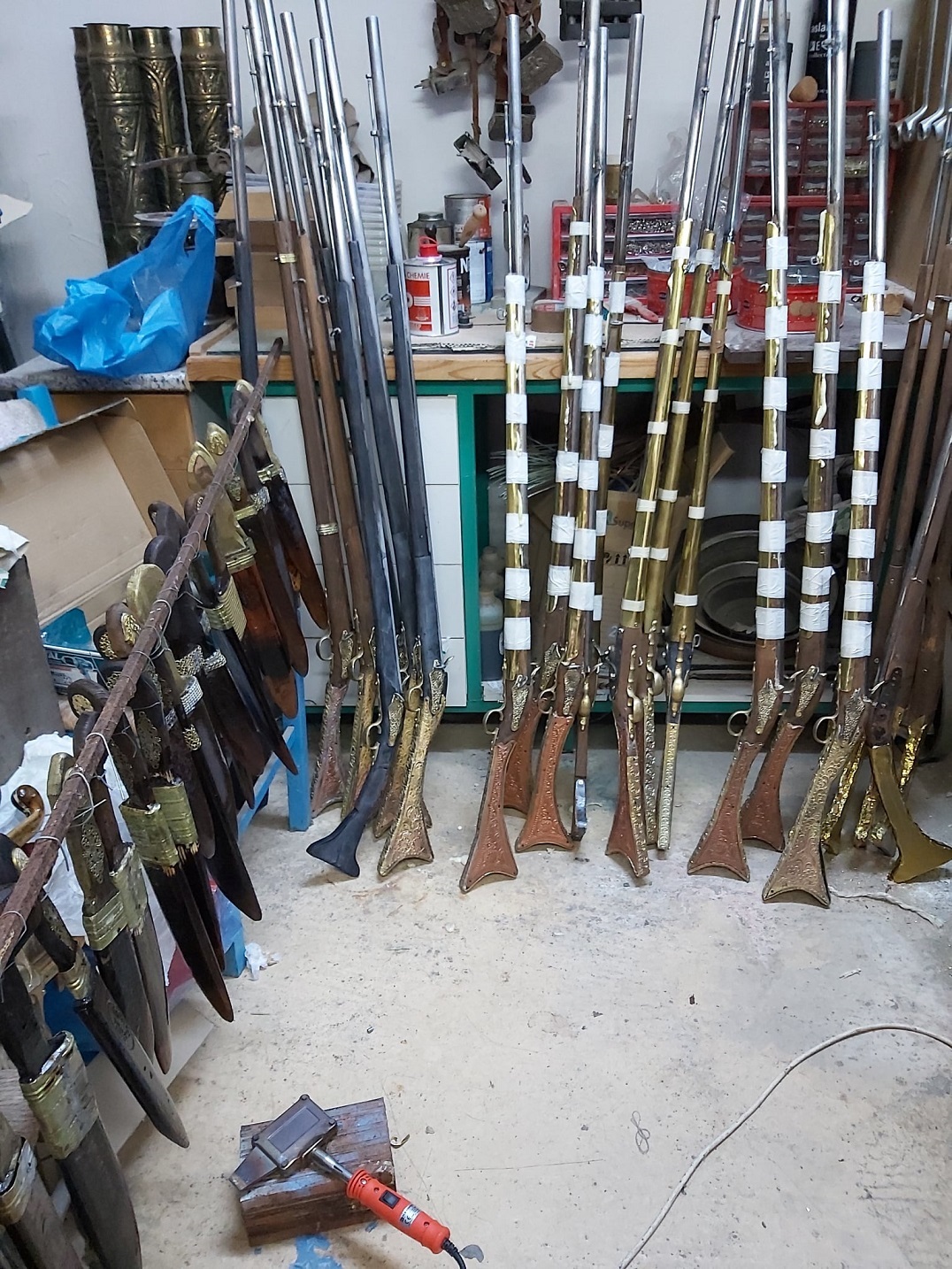 Φουστανέλες και μανιάτικες ενδυμασίες, για άνδρες και γυναίκες, ακόμη και στολές για αστυνομικούς της εποχής, ουσιαστικά μιλάμε για περίπου 80 φορεσιές, 40 καριοφίλια (αντίγραφα) γιαταγάνια, πιστόλες, μαχαίρια, ζώνες και σελάχια για όλους!»