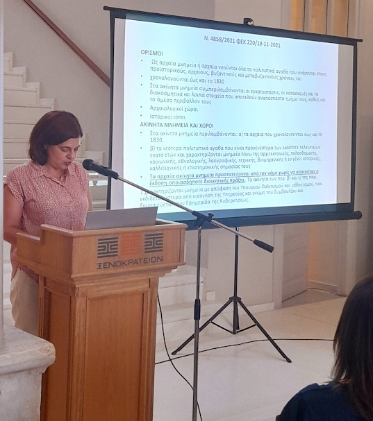 Ακολούθησε εισήγηση από την Δρ. Αικατερίνη Χαμηλάκη, Αρχαιολόγο ΕΦΑ Αιτωλοακαρνανίας και Λευκάδας για το θεσμικό πλαίσιο προστασίας κινητών και ακίνητων μνημείων. Η κα Χαμηλάκη επίσης παρουσίασε τα σημαντικότερα εκκλησιαστικά μνημεία της Αιτωλίας.