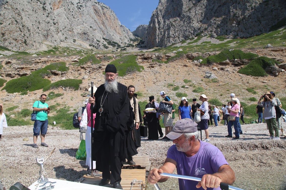 Η μετάβαση στον κλειστό όρμο της Βαράσοβας έγινε με βάρκες κατοίκων του χωριού από την Κάτω Βασιλική με πορεία πλάι στα εντυπωσιακά άγρια βράχια του βουνού που βυθίζονται κάθετα στην θάλασσα.