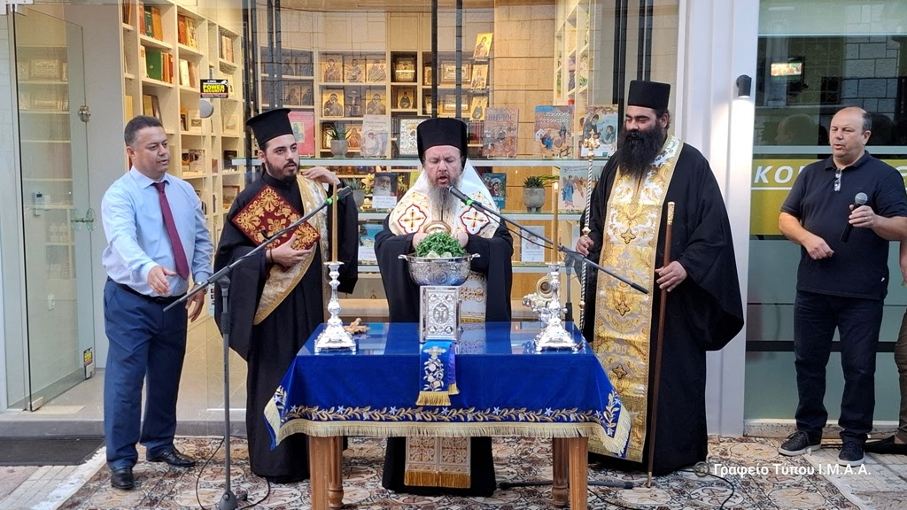 Οφείλω αυτή τη στιγμή να ευχαριστήσω και τον π. Χρήστο Παπαχρήστο, αλλά και όλως ιδιαιτέρως τον άξιο διάδοχό του, τον π. Αθανάσιο Κουλοχέρη, διότι με την συγκατάθεση και του ιδίου και του περί αυτόν Εκκλησιαστικού Συμβουλίου παραχωρήθηκε αυτό το κατάστημα στην Ιερά Μητρόπολη, με σκοπό να λειτουργήσει πλέον ως ένα από τα δύο Βιβλιοπωλεία της τοπικής μας Εκκλησίας.