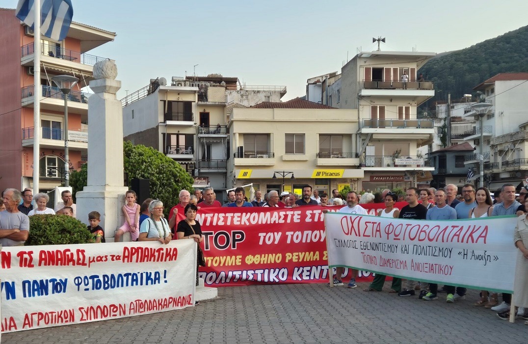 Με συνθήματα και πανό πολίτες όλων των ηλικιών συγκεντρώθηκαν στην κεντρική πλατεία και τάχθηκαν κατά της άναρχης ανάπτυξης φωτοβολταϊκών και ανεμογεννητριών, εκφράζοντας την αγωνία τους για τα έργα ΑΠΕ που χωροθετούνται χωρίς σχεδιασμό στην ευρύτερη περιοχή.