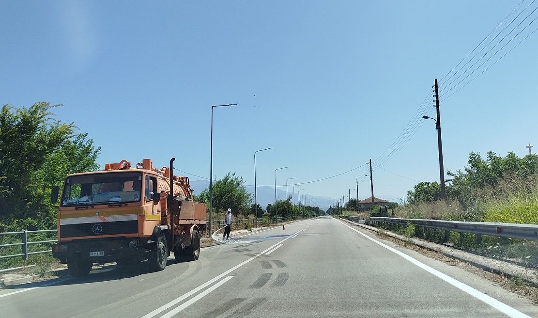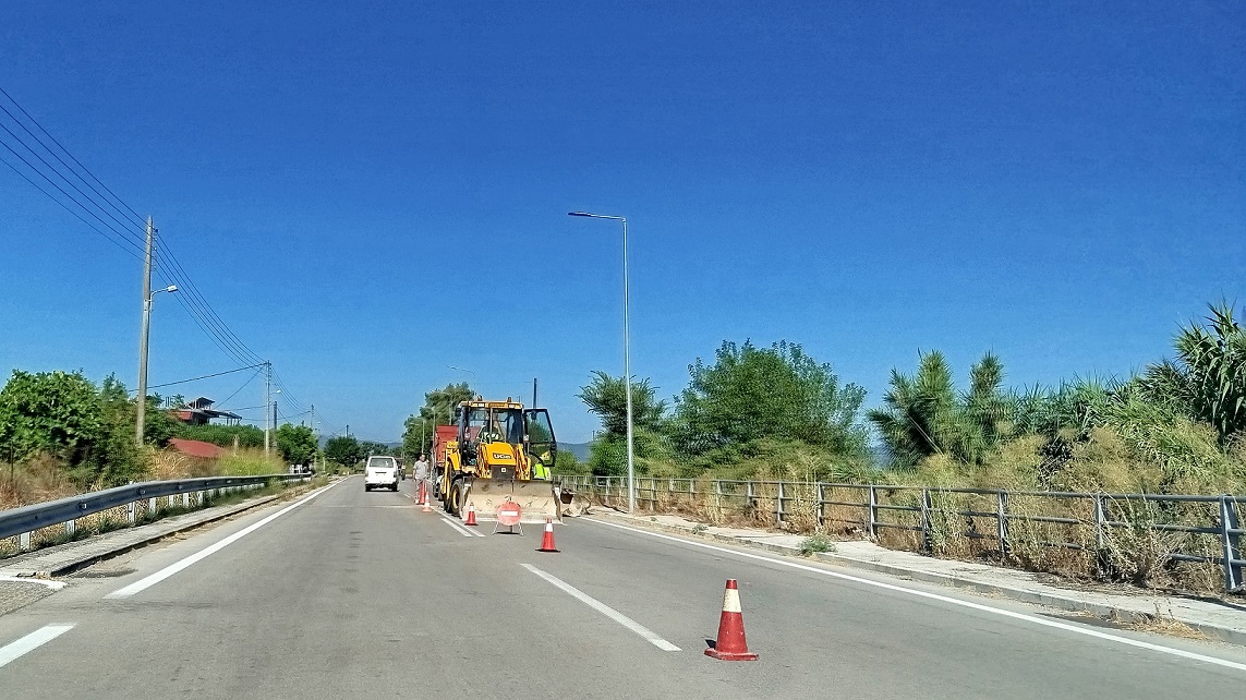 Για τρεις περίπου ώρες, όσο διήρκησαν οι εργασίες, η κυκλοφορία των οχημάτων στα δυο ρεύματα γίνονταν εκ περιτροπής.