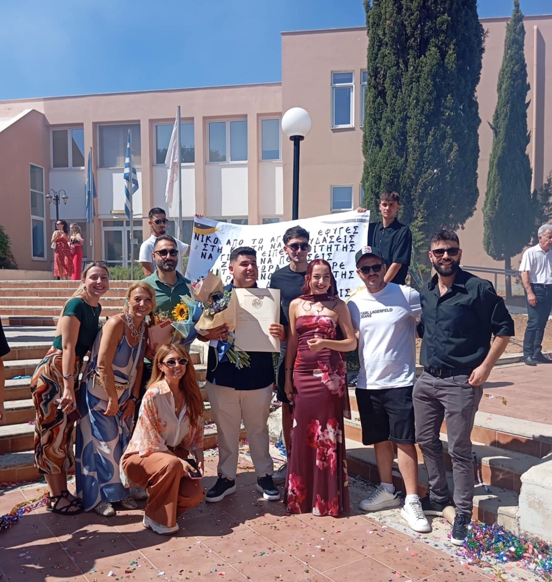 Ήταν μια ημέρα χαράς και για τους υπερήφανους γονείς του, Ευθύμιο και Φωτεινή, την αδερφή του Ειρήνη, τον θείο του Κώστα και τους φίλους του, που βρέθηκαν κοντά του για να τον στηρίξουν και να του ευχηθούν τα καλύτερα για την ολοκλήρωση των σπουδών και την απόκτηση του πτυχίου του!