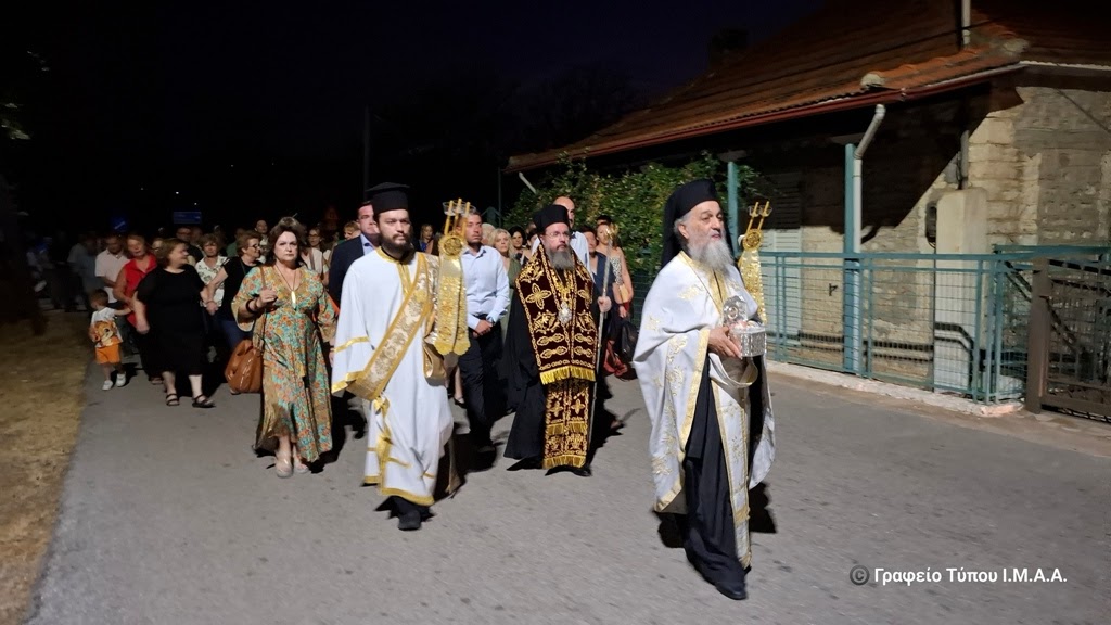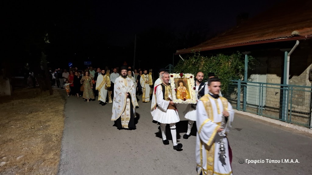 Ακολούθησε η λιτάνευση της Ιεράς Εικόνας και του Ιερού Λειψάνου του Αγίου στους δρόμους του χωριού.