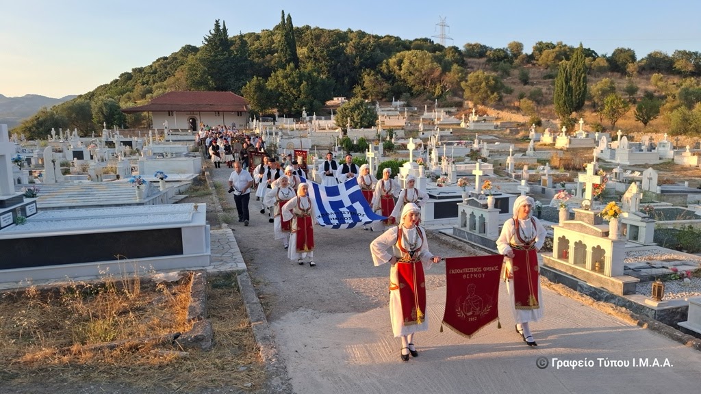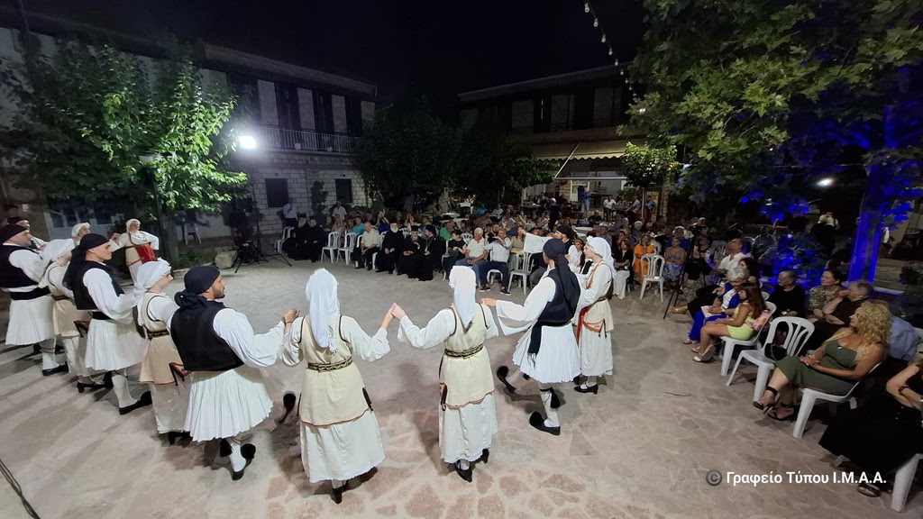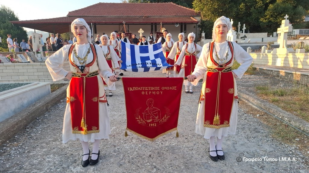 Ακολούθησαν στην κεντρική πλατεία της κοινότητας οι χαιρετισμοί των επισήμων και πολιτιστική βραδιά από τα μέλη του Εκπολιτιστικού Ομίλου Θέρμου.