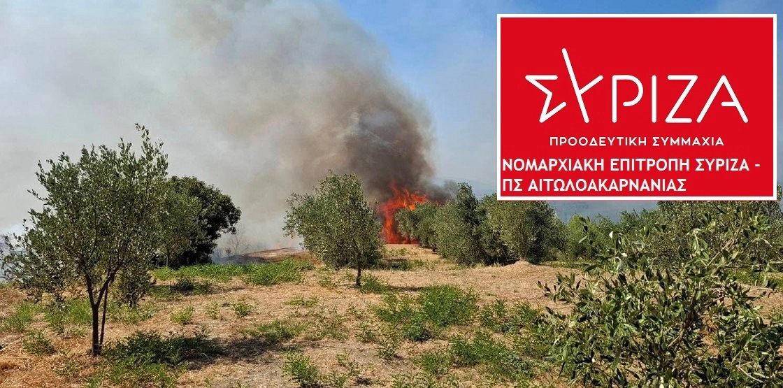 Σε ανακοίνωσή της η ΝΕ ΣΥΡΙΖΑ-ΠΣ Αιτωλοακαρνανίας, αναφέρει τα εξής: «Η Αιτωλοακαρνανία βρίσκεται για ακόμη μία φορά στο έλεος των φλογών, καθώς Σταμνά, Βόνιτσα, Γαλατάς, Αιτωλικό, Αγριλιά και άλλες περιοχές δοκιμάζονται σκληρά.