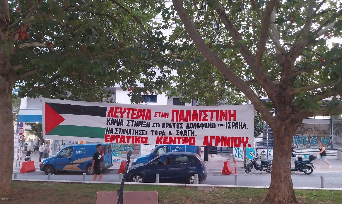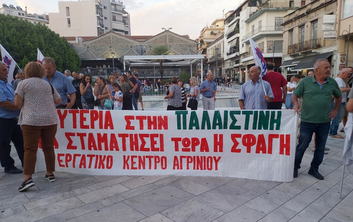 Με συμμετοχή πολλών πολιτών πραγματοποιήθηκε σήμερα κινητοποίηση από το Εργατικό Κέντρο Αγρινίου, ώστε να εκφράσει αλληλεγγύη στον λαό της Παλαιστίνης.