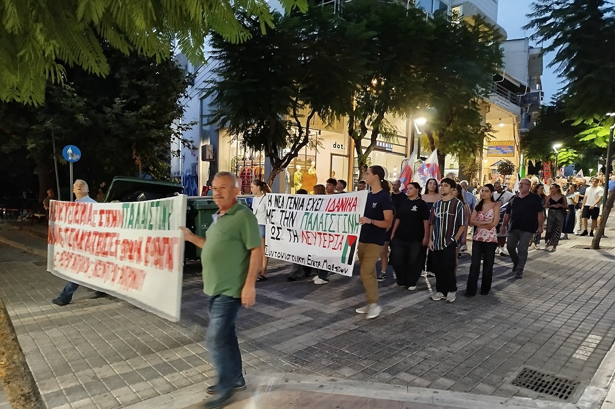 Η συγκέντρωση έγινε στην πλατεία Δημάδη, με κύριο αίτημα «Να σταματήσει η επιχείρηση πλήρης κατοχής στη Γάζα. Να σταματήσει τώρα η γενοκτονία του Παλαιστινιακού λαού», όπως ανέφερε και η σχετική ανακοίνωση του Εργατικού Κέντρου.