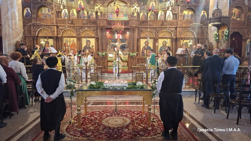 Στο τέλος της Θείας Λειτουργίας τελέστηκε ιερό μνημόσυνο στην μνήμη των Μαρτύρων της Μικρασιατικής τραγωδίας και των προσφύγων, που έφθασαν στην Αιτωλοακαρνανία και δημιούργησαν τον προσφυγικό οικισμό του Αγίου Κωνσταντίνου στο Αγρίνιο.