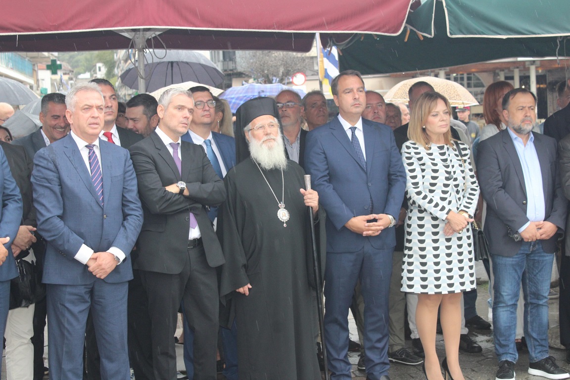 Χαιρετισμό απεύθυναν ο Δημάρχος Αμφιλοχίας, κ. Σάκης Τορουνίδης, ο εκπρόσωπος της κυβέρνησης, υφυπουργός Εργασίας, Κωνσταντίνος Καραγκούνης και ο γλύπτης που φιλοτέχνησε το έργο, κ. Ευάγγελος Τύμπας.