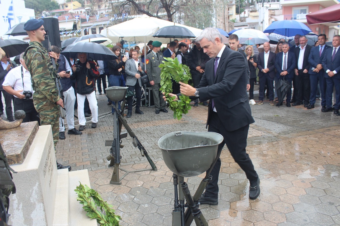 Έγινε η κατάθεση στεφάνων, τηρήθηκε ενός λεπτού σιγή και η ανάκρουση του Εθνικού Ύμνου από τη Φιλαρμονική του Δήμου Αμφιλοχίας.