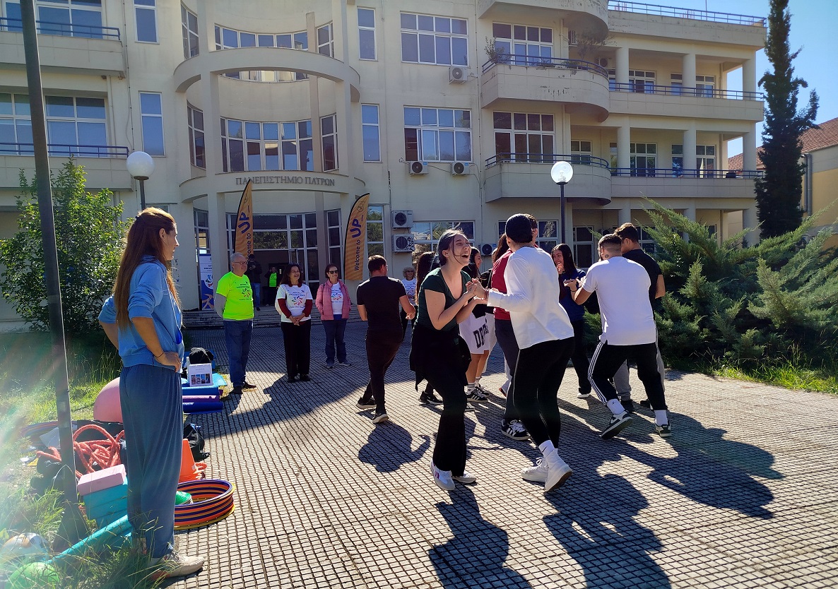 Την Πέμπτη 9 Οκτωβρίου στον προαύλιο χώρο του Πανεπιστημίου, πραγματοποιήθηκε από την κα Αλεξάνδρα Μαρκάτη, Διδάκτωρ Αθλητικής Ψυχολογίας και τους συνεργάτες της, ένα διαδραστικό πρόγραμμα, που συνδύαζε παιδαγωγικό παιχνίδι, αθλητική δράση και δημιουργική κίνηση (Action Fit). Μέσα από τα παιχνίδια γνωριμίας, τις ομαδικές δοκιμασίες και τις αθλητικές δραστηριότητες, οι φοιτητές είχαν την ευκαιρία να συνεργαστούν, να ενεργοποιηθούν σωματικά και να αναπτύξουν πνεύμα ομάδας. Μια εμπειρία γεμάτη ενέργεια, διασκέδαση και θετική διάθεση για το ξεκίνημα της φοιτητικής τους ζωής.