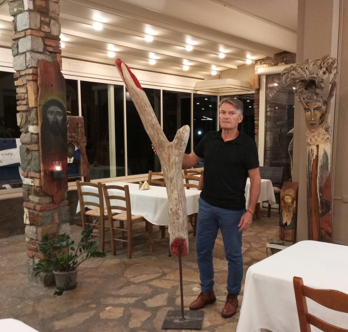 Οι μικροί μαθητές ενημερώθηκαν διεξοδικά από τον αυτοδίδακτο καλλιτέχνη Δημήτρη Μαλεσιάδα για τα έργα που εκτίθενται στους εσωτερικούς χώρους της ταβέρνας «Αρχονταρίκι» αλλά και το ανοιχτό μουσείο στην πλατεία του γραφικού οικισμού, με τα εντυπωσιακά ξύλινα γλυπτά!
