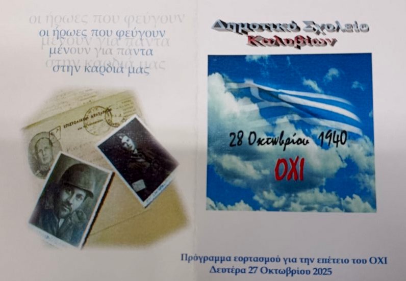 Αύριο Τρίτη 28/10 να αναφέρουμε ότι, το πρωί θα τελεσθεί η Θεία Λειτουργία και η Δοξολογία στον Ι.Ν. Αγίου Νικολάου Καλυβίων, παρουσία των εκπαιδευτικών, των μαθητών και μαθητριών από τα σχολεία του χωριού και κατόπιν θα γίνει η καθιερωμένη παρέλαση προς το Μνημείο των Πεσόντων, όπου θα τελεσθεί επιμνημόσυνη δέηση και κατάθεση στεφάνων.