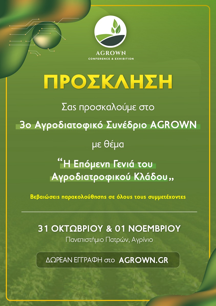 Η συμμετοχή είναι δωρεάν μέσω του επίσημου site https://agrown.gr/ του Συνεδρίου.