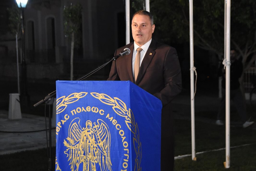 Στην εκδήλωση απεύθυναν χαιρετισμούς ο Δήμαρχος Ιερής Πόλης Μεσολογγίου, Σπύρος Διαμαντόπουλος, ο Σεβασμιώτατος Μητροπολίτης Αιτωλίας & Ακαρνανίας, κ.κ. Δαμασκηνός, η Πρόεδρος της ΕΣΗΕΑ, Μαρία Αντωνιάδου, ο Πρόεδρος της ΠΟΕΣΥ, Σωτήρης Τριανταφύλλου, ενώ στη συνέχεια τελέστηκε επιμνημόσυνη δέηση.