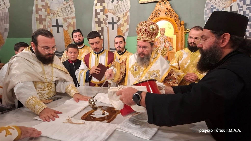 Το πρωί του Σαββάτου, ο Σεβασμιώτατος Μητροπολίτης Αιτωλίας και Ακαρνανίας κ. Δαμασκηνός χοροστάτησε στην Ακολουθία του Όρθρου και στη συνέχεια τέλεσε την Ακολουθία των Εγκαινίων. Αμέσως μετά προεξήρχε στην πρώτη πανηγυρική Θεία Λειτουργία επί της εγκαινιασθείσης Αγίας Τραπέζης.