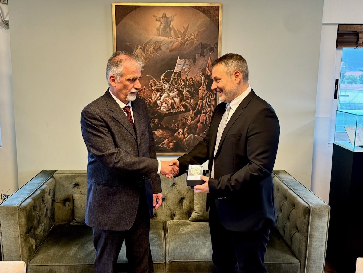Ο Δήμαρχος Ιερής Πόλης Μεσολογγίου, Σπύρος Διαμαντόπουλος, βράβευσε τον Καθηγητή του Πανεπιστημίου Πατρών, κ. Αριστογιάννη Γαρμπή, για την ουσιαστική του συνεισφορά στην υλοποίηση του μνημείου προς τιμήν του Δημητρίου Μεσθενέα, συνεργάτη του Ιωάννη-Ιάκωβου Μάγερ και τυπογράφο των «Ελληνικών Χρονικών» και του «Ύμνου εις την Ελευθερίαν», σήμερα, Τρίτη 25 Νοεμβρίου 2025.
