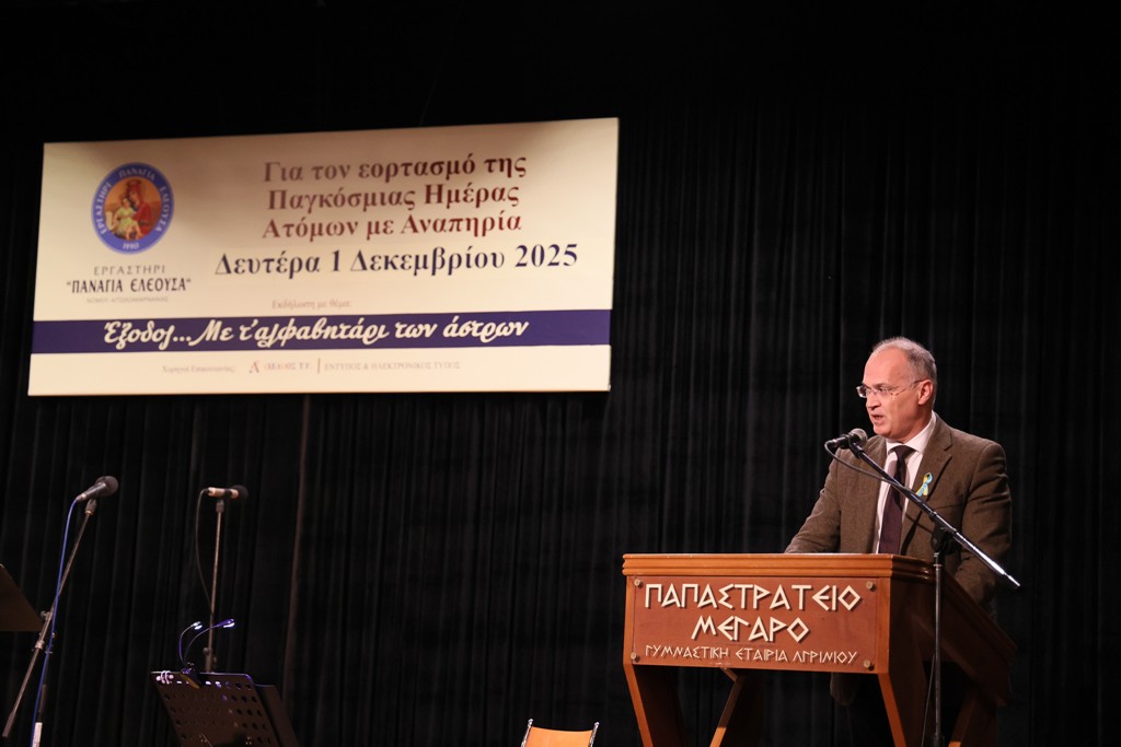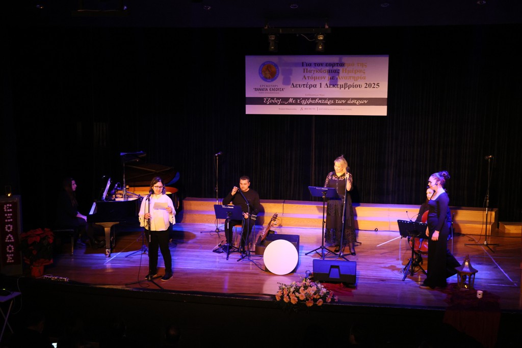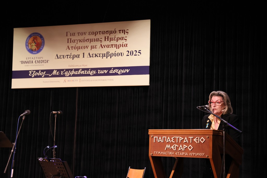 Το Εργαστήρι Ειδικής Επαγγελματικής Αγωγής και Αποκαταστάσεως «Παναγία Ελεούσα» για άτομα με νοητική αναπηρία (Μεσολόγγι-Αγρίνιο), στο πλαίσιο του εορτασμού της Παγκόσμιας Ημέρας των Ατόμων με Αναπηρία πραγματοποίησε με επιτυχία την Δευτέρα 1η Δεκεμβρίου 2025, στο Παπαστράτειο Μέγαρο Αγρινίου, την εκδήλωση: «Έξοδος...Με τ’ αλφαβητάρι των άστρων».