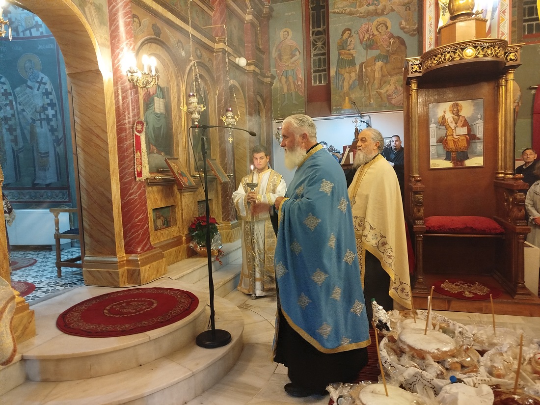 Στον Ι.Ν. Αγίου Νικολάου, χοροστατούντος του Πρωτοσύγγελου της Ιεράς Μητροπόλεως π. Θεόκλητου Ράπτη και του εφημέριου π. Θεοδόσιου Αθανασόπουλου, εψάλη ο Μέγας Πανηγυρικός Εσπερινός μετ’ αρτοκλασίας, ενώ ακούστηκε στη συνέχεια το κήρυγμα της ημέρας.