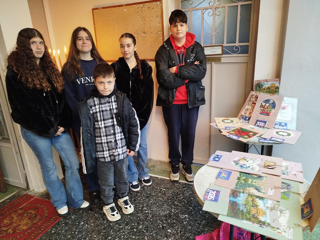 Επίσης, στο προαύλιο του ναού, μαθητές και μαθήτριες του Γυμνασίου Καλυβίων, διέθεταν προς ενίσχυση των δράσεων του σχολείου τους, ημερολόγια και χειροποίητες κατασκευές εν όψει των χριστουγεννιάτικων εορτών.