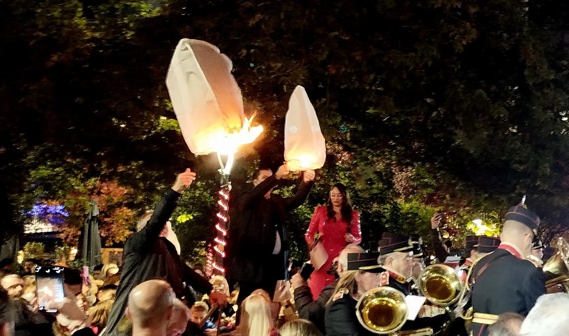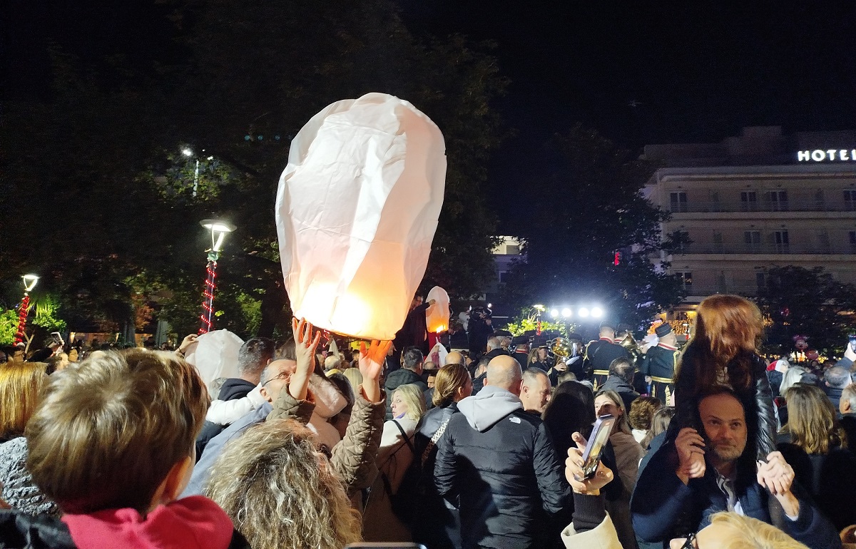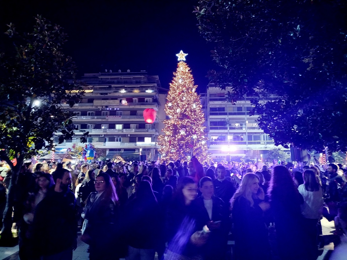 Το δέντρο, στολισμένο με χιλιάδες φωτάκια, φώτισε τον ουρανό σηματοδοτώντας επίσημα την έναρξη της πιο όμορφης περιόδου του χρόνου. Αμέσως μετά, εκατοντάδες φαναράκια των ευχών αφέθηκαν ελεύθερα να υψωθούν ψηλά στον ουρανό της πόλης.