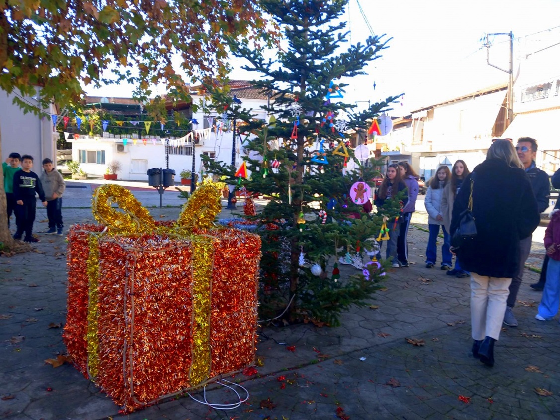 Τους υποδέχτηκε με χαρά, ο εκπρόσωπος και Τοπικός Σύμβουλος της Κοινότητας Καλυβίων, Δημήτρης Τριανταφυλλάκης, κατόπιν τοποθέτησαν τα στολίδια στο μικρό έλατο και τους προσφέρθηκαν χυμοί.