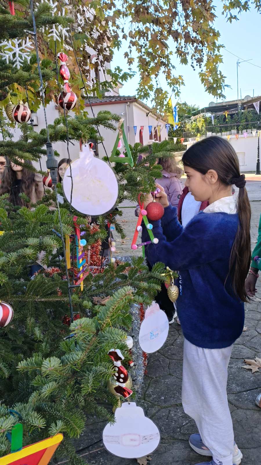 Μαθητές και μαθήτριες του Δημοτικού Σχολείου Καλυβίων Αγρινίου συνοδευόμενοι από τους δασκάλους τους, βρέθηκαν το πρωί στην κεντρική πλατεία του χωριού μας για να στολίσουν με ιδιόχειρες κατασκευές και χειροποίητα δώρα, το χριστουγεννιάτικο δέντρο που έχει τοποθετήσει η Κοινότητα Καλυβίων.