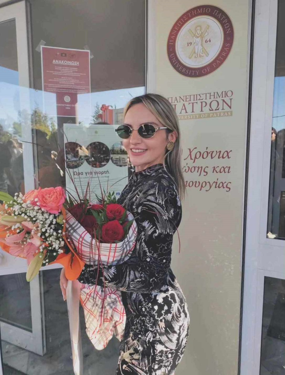 Ήταν μια ημέρα χαράς και για τους υπερήφανους γονείς της, Γιώργο και Έλλη, για τις αδερφές της Καλλιρόη και Φαίη, καθώς και για τους στενούς συγγενείς της, που βρέθηκαν κοντά της για να την στηρίξουν και να τις ευχηθούν για την ολοκλήρωση των σπουδών και την απόκτηση του πτυχίου της!