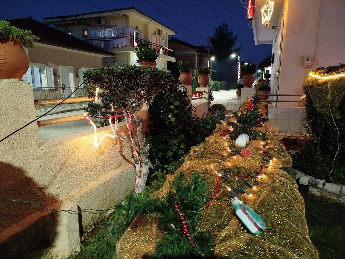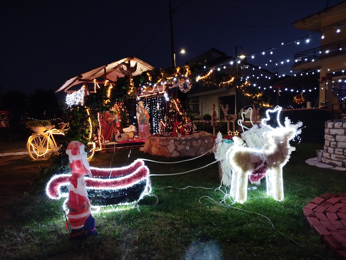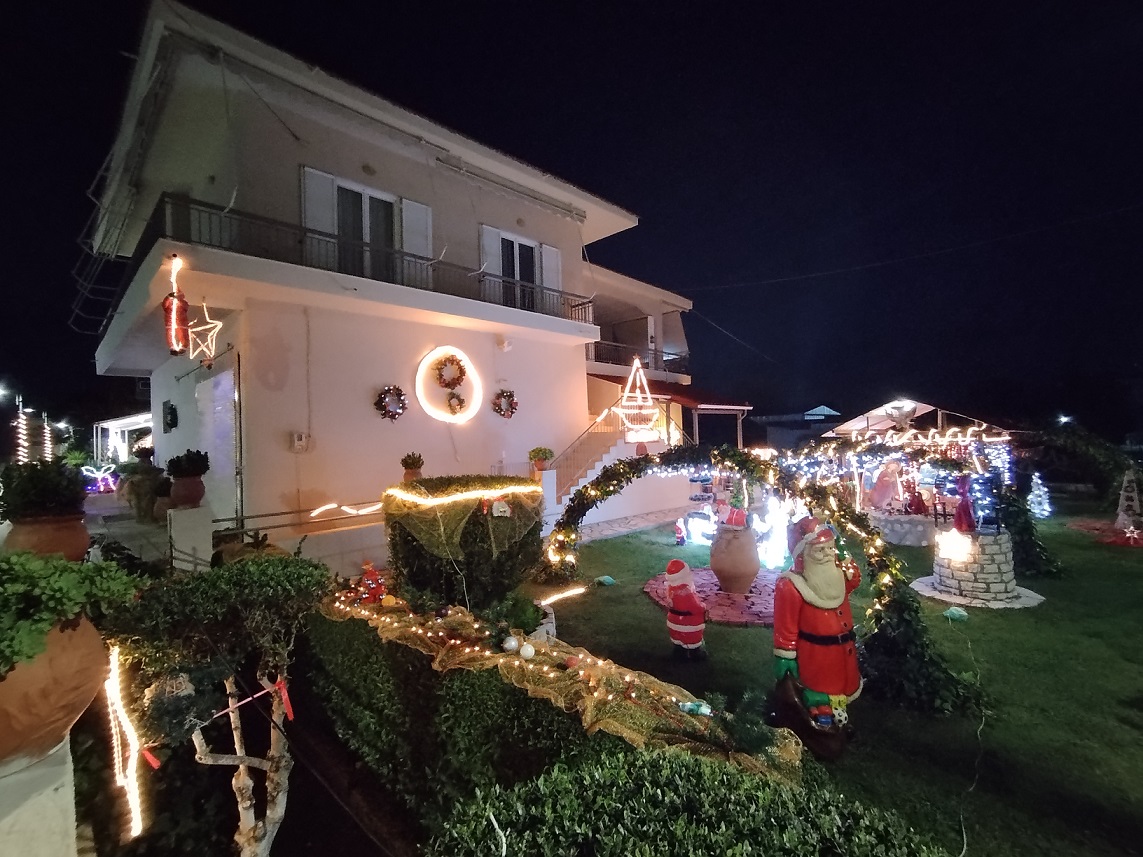 Επίσης, ξεχωρίζουν οι συνθέσεις με το έλκηθρο του Αη Βασίλη, με τις φιγούρες του ασπρομάλλη παππού να κυριαρχούν στο χώρο, τα ποδήλατα στολισμένα με φωτιστικές γιρλάντες, αψίδες αναρριχητικών με λαμπιόνια, το παλιό πηγάδι και οι βρύσες φωτισμένα, ένα πολύχρωμο καράβι και λαμπιόνια παντού, τα οποία δημιουργούν ένα φαντασμαγορικό θέαμα!