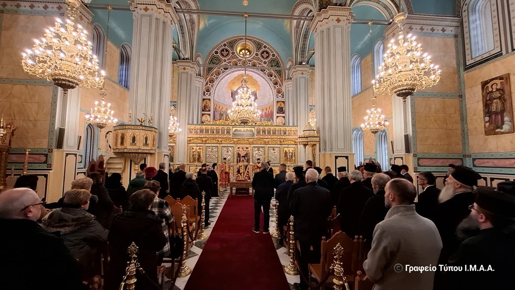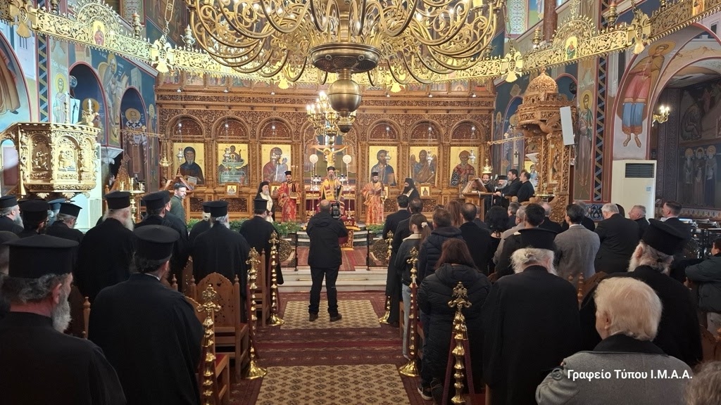 Στις 10:00’ το πρωί πραγματοποιήθηκε η τελετή στον Ιερό Μητροπολιτικό Ναό Αγίου Σπυρίδωνος Ιεράς Πόλεως Μεσολογγίου. Συμμετείχαν ο Αρχιερατικός Επίτροπος Μεσολογγίου Αρχιμ. Αναστάσιος Καντάνης και ο Αρχιερατικός Επίτροπος Αστακού, Αρχιμ. Δαυίδ Μπαζούλας, οι Εφημέριοι των Αρχιερατικών Περιφερειών Μεσολογγίου και Αστακού, οι Άρχοντες του τόπου, μεταξύ των οποίων ο Δήμαρχος Ιεράς Πόλεως Μεσολογγίου κ. Σπυρίδων Διαμαντόπουλος, ο Αντιπεριφερειάρχης Αιτωλοακαρνανίας κ. Θανάσης Μαυρομμάτης, ο Ανώτερος Διοικητής Φρουράς Μεσολογγίου, ο Αστυνομικός Διευθυντής Αιτωλίας, ο Διοικητής Π. Υ. Ν. Αιτωλοακαρνανίας, ο Λιμενάρχης Μεσολογγίου, Αντιδήμαρχοι, Δημοτικοί Σύμβουλοι, Πρόεδροι Τοπικών Κοινοτήτων, εκπρόσωποι τοπικών Συλλόγων και Φορέων και ο πιστός λαός.
