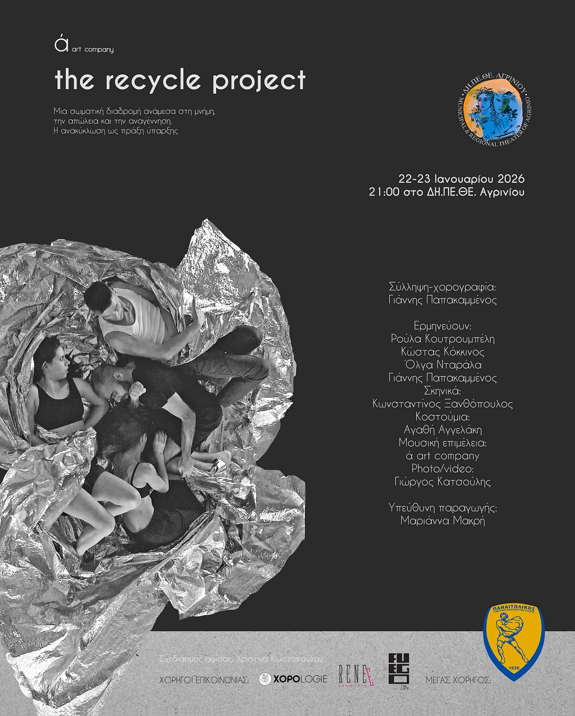 Το Δημοτικό Περιφερειακό Θέατρο Αγρινίου υποδέχεται την σύγχρονη σκηνική δημιουργία The Recycle Project της á artcompany, στις 22 και 23 Ιανουαρίου, στις 21:00, στην Κεντρική Σκηνή.