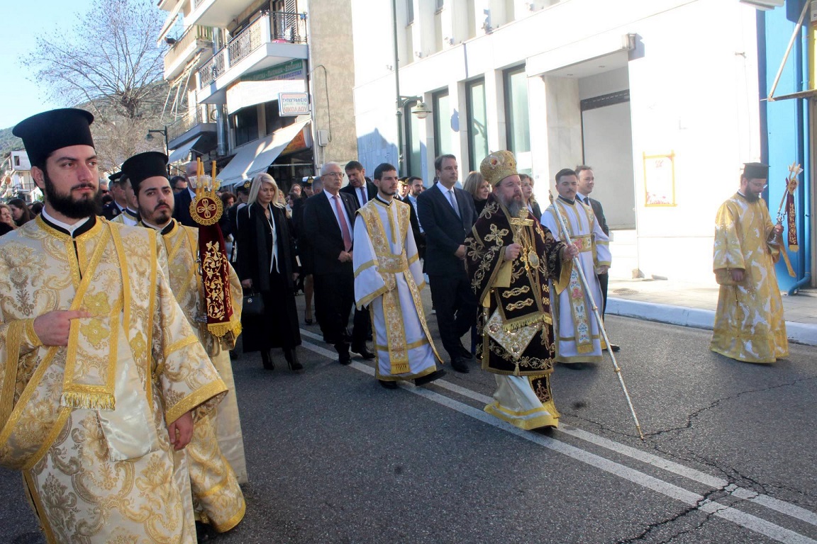 Με λαμπρότητα και με τις πρέπουσες τιμές, μετά το πέρας της Θείας Λειτουργίας, όπου χοροστάτησε ο Σεβασμιώτατος Μητροπολίτης Αιτωλίας & Ακαρνανίας, κ. Δαμασκηνός, πραγματοποιήθηκε σήμερα Κυριακή 18 Ιανουαρίου, στην Αμφιλοχία, η Λιτάνευση της Ιεράς Εικόνας του πολιούχου Αγίου Αθανασίου στους δρόμους της πόλης.