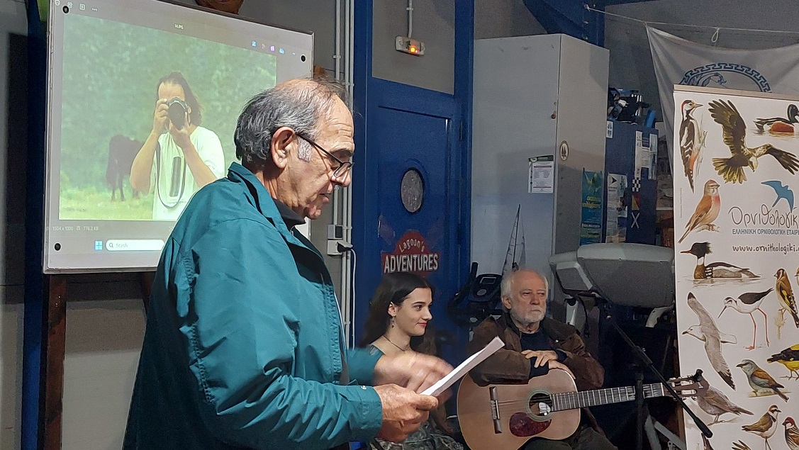 Ο Κώστας Παπακωνσταντίνου, μέλος του Δ.Σ. της Ορνιθολογικής, μίλησε για τα 60 χρόνια Μεσοχειμωνιάτικων Καταμετρήσεων Υδροβίων Πουλιών και για τις πρώτες πολυήμερες ορνιθολογικές εξορμήσεις τη δεκαετία του '80 στους υγροτόπους της Δυτικής Ελλάδας, παρέα με τον Γιάννη.