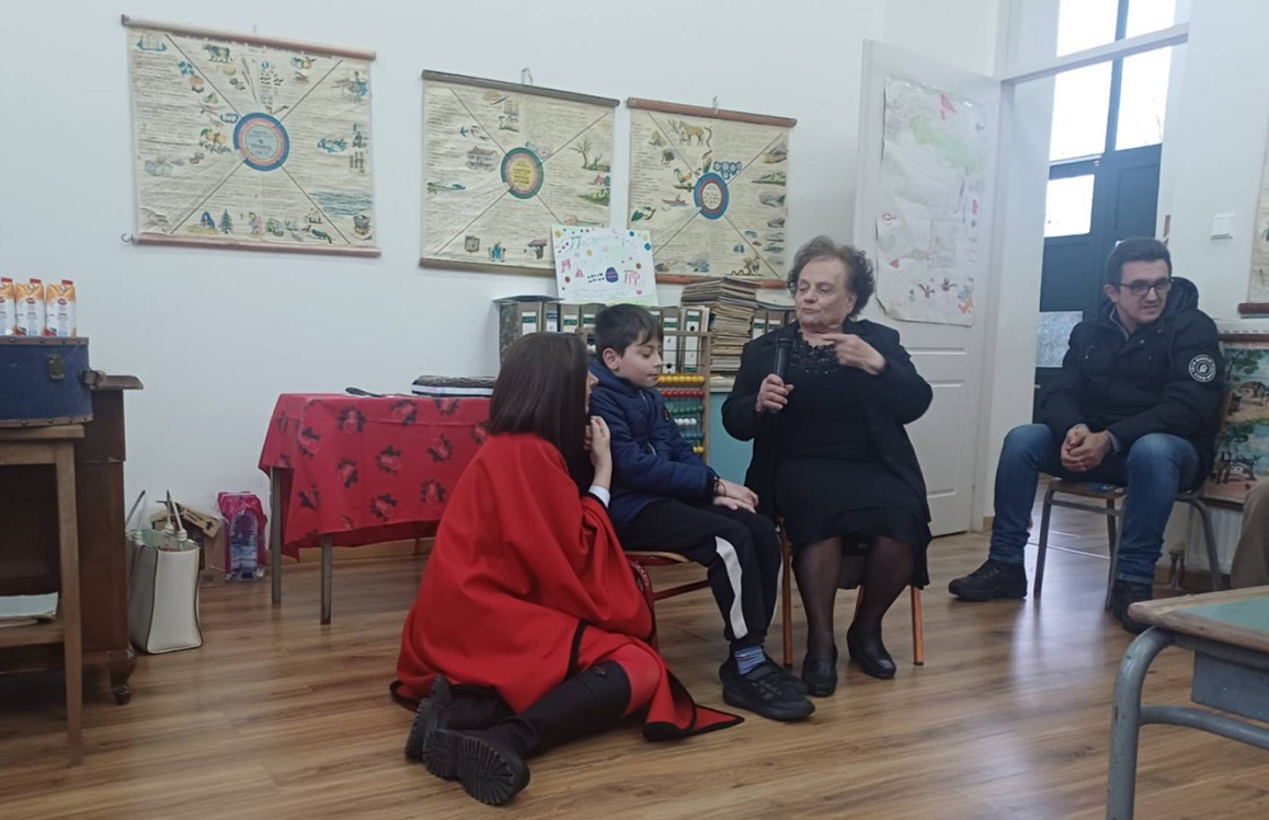 Κοντά τους, ήταν η Έφη Σαμαρτζοπάνου (Αριάδνη Δάντε) και ο εκπαιδευτικός Θοδωρής Τσιλίκας, και πολλές νέες- οι φίλες -οι, που μια φορά κι έναν καιρό ήταν μαθήτριες του σχολείου, όπως η κυρία Παναγιώτα Ράπτη και ο κύριος Θεόδωρος Μυλωνάς. Σε ένα από τα φωτογραφικά στιγμιότυπα ποζάρει η κυρία Παναγιώτα, 84 ετών, που μοιράστηκε με μικρούς και μεγάλους, τις σχολικές της αναμνήσεις πρωταγωνιστώντας στη νέα θεματική δράση της ομάδας.